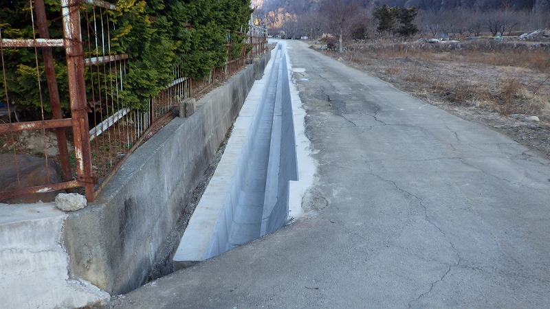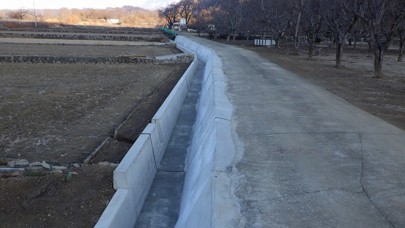 コンクリートで周りを整備することで、水が流れやすく、より使用しやすい用水路へとなります。